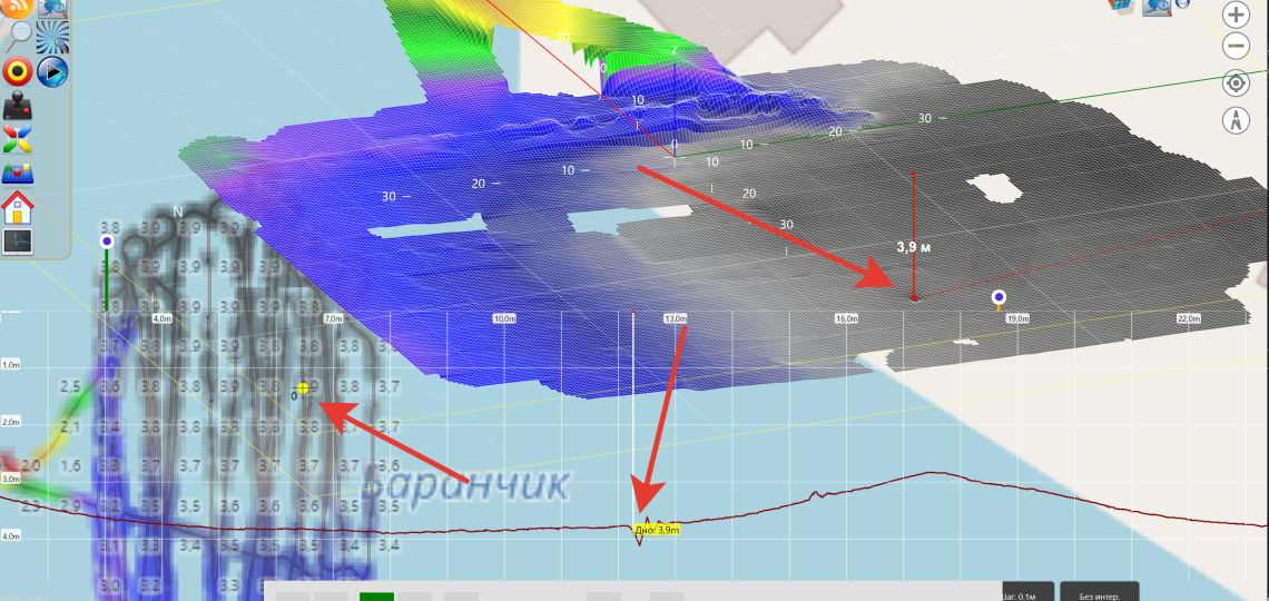 - Принцип «Сквозной Точки»: Выберите точку на карте — и одновременно увидите ее на 3D-модели, на географической карте и на эхограмме. Полное понимание локации без догадок.